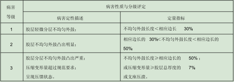 板式橡膠支座壓縮、分層外鼓分級評定表